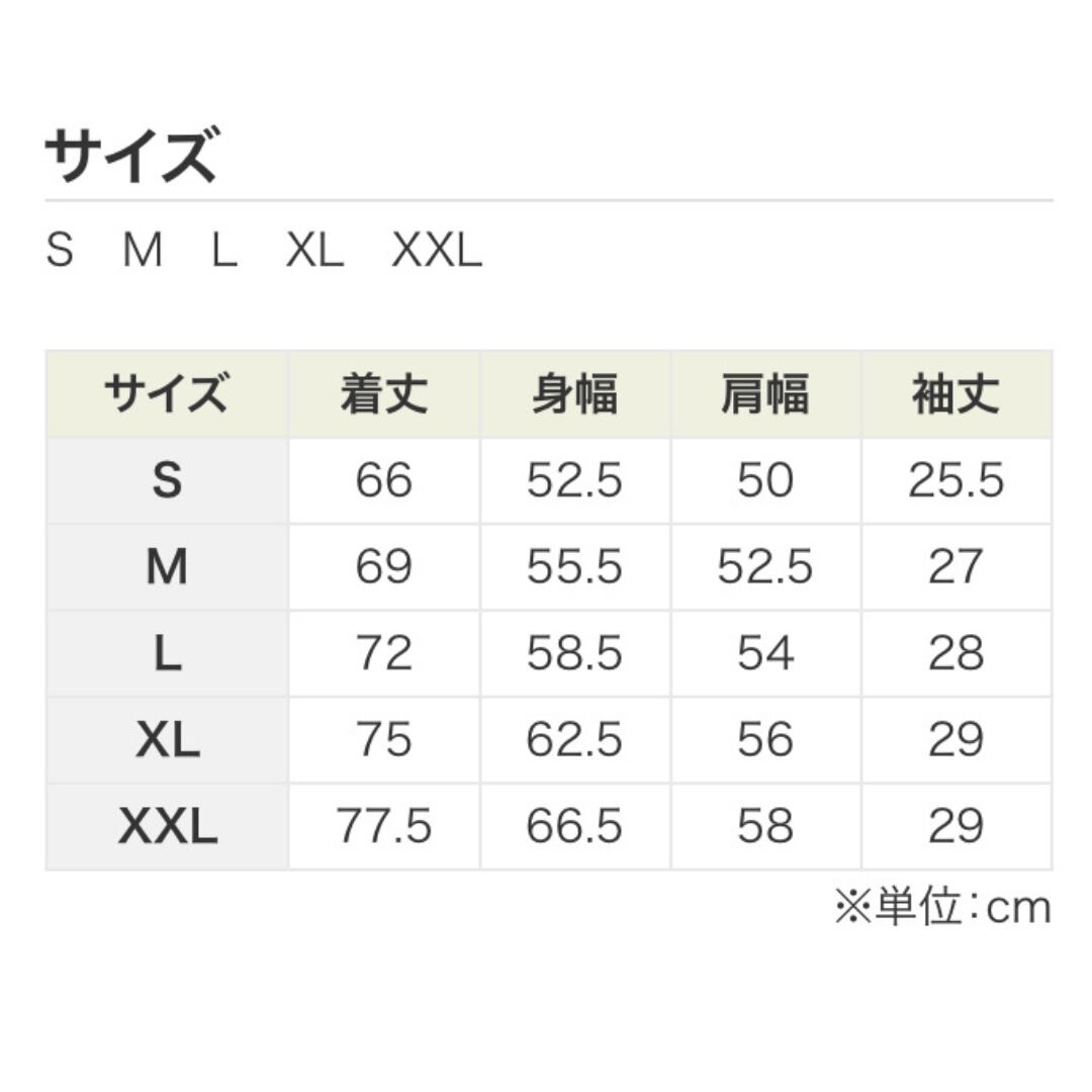 S:着丈 66cm / 身幅 52.5cm / 肩幅 50cm / 袖丈 25.5cm